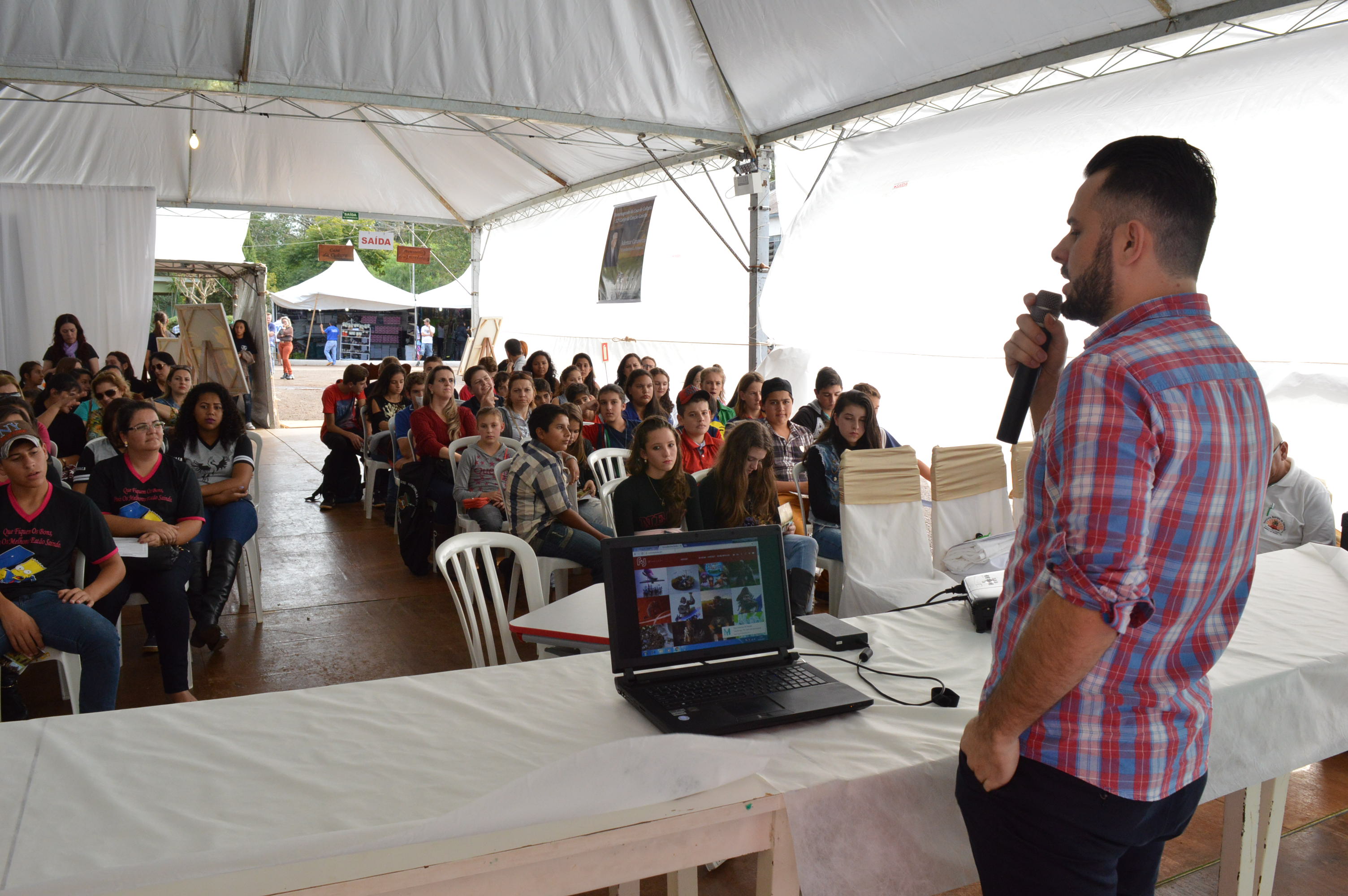 As atividades na Casa de Cultura do 32º Carijo da Canção Gaúcha iniciaram com a palestra “Entretenimento aliado à educação”, ministrada por Jean Campos, diretor e sócio-fundador do Romeu&Julieta Estúdio. O palestrante apresentou o case do projeto Palmeira 1914 - um game que mostra construções, história, cultura e costumes da cidade por meio de um óculos de Realidade Virtual, contando assim uma parte extremamente importante da história de Palmeira das Missões e proporcionando o aprendizado.