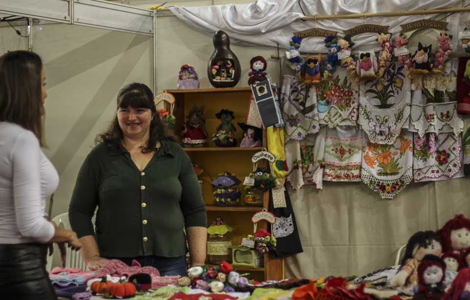 Otimismo. É justamente isto que fez dona Lusiléia Kintschner, moradora da Esquina São Bento decidir expor seus trabalhos artesanais que faz em parceria com a Associação de Pais e Amigos dos Excepcionais (APAE) e a Emater pela primeira vez na MIP. O evento foi encerrado com o corte simbólico da fita e a abertura oficial para a visitação da VXI MIP.